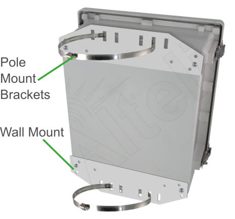The Sentry can also be mounted to any solid vertical structure. Then power is ran to the unit and the cameras connected to the Sentry system using Cat6 network cable which allows up to 300 foot wire runs. Please remember to use conduit or outdoor rated cable when the cable is exposed to the elements.