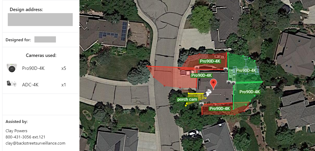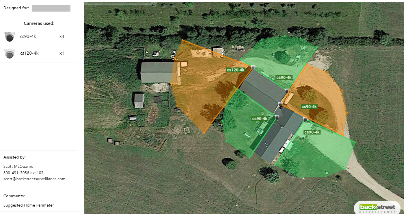 We use our custom "Backstreet Surveillance - System Design Tool" that integrates with Google Maps. This application puts us on-site. It allows us to see the structure, terrain and areas you want to secure. With absolute confidence, we can recommend best camera placement and select the right camera for each location.